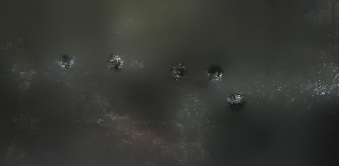 Hypnopompia is the state of consciousness leading out of sleep, it is an emotional and credulous dreaming cognition trying to make sense of real world stolidity. The condensation heavy window pane is the metaphor of choice to illustrate this cognitive shift as well as to emphasize the feeling of being inside. In this short span of time, where the world is still beyond the field of vision, the pane is used as canvas to make sense of subconscious mental activities influenced by reality looming up (ongoing).